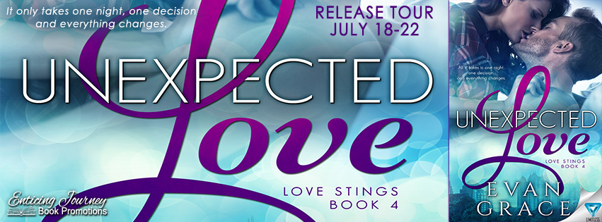 I hadn’t read any of the other books in this series, but Unexpected Love did read like a true standalone, even though it’s connected to characters from several of Evan Grace’s other books. There are ALOT of supporting players here — I kind of had a hard time keeping them all straight!