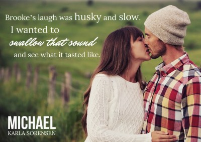 So that brings us to Michael. It’s set about a year after Cole and Julia’s story. Brooke is a single mom raising her almost-1-year-old twins alone, and Michael is still an undeniable flirt… whom everyone assumes is also an undeniable manwhore. But looks can be deceiving.