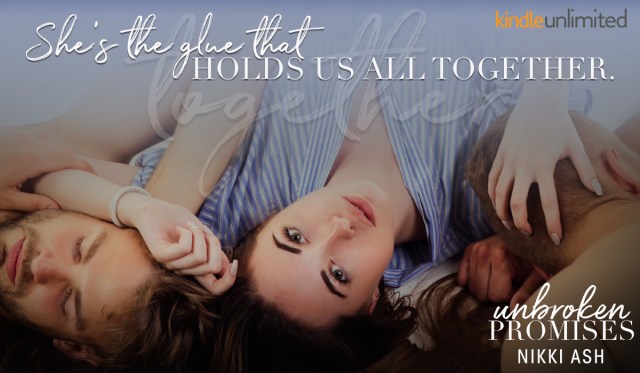 M/F/M thruples aren’t what I usually read, and when I signed up to review Unbroken Promises, I didn’t realize it was a M/F/M story. But I dove in, and Nikki Ash delivered a delicious, haunting, heartbreaking triangle between childhood friends Cole, Xander and Delilah.