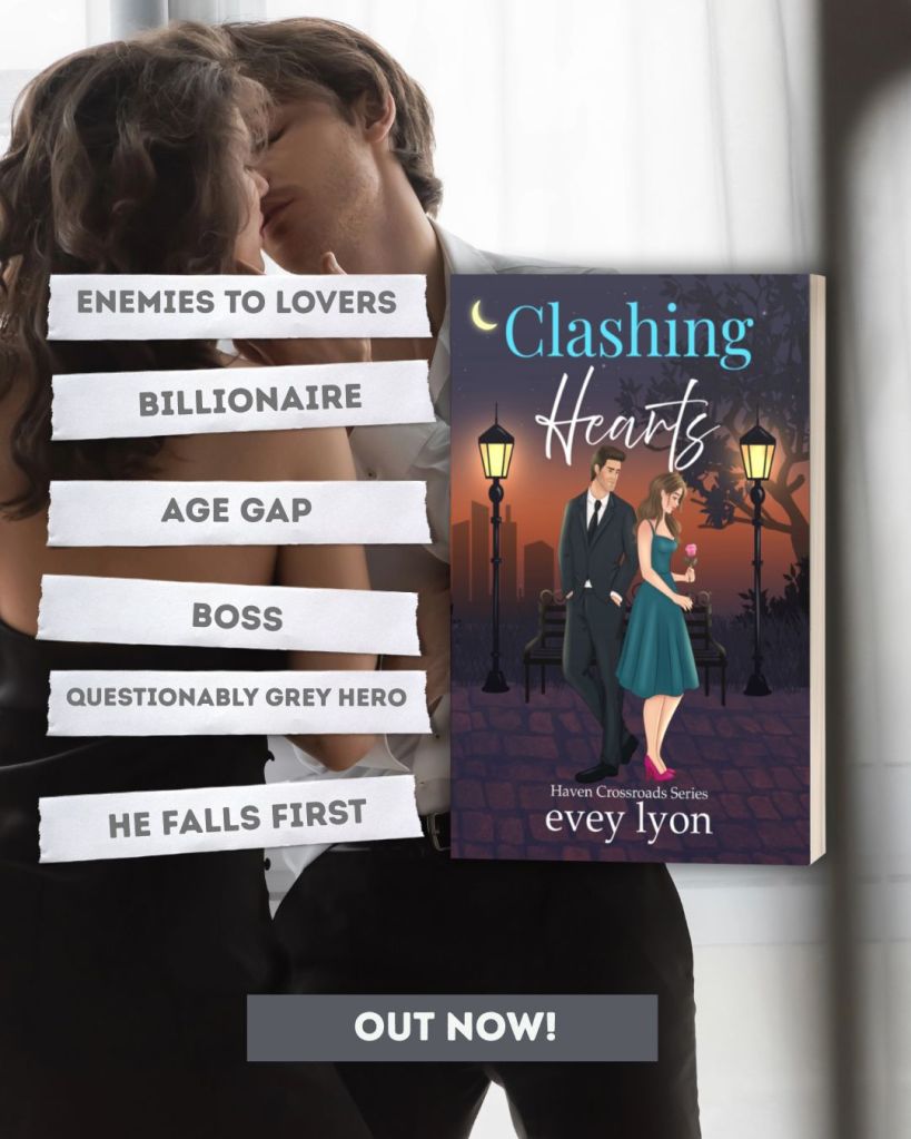 Clashing Hearts is a billionaire boss/enemies-to-lovers/workplace romance that kicks off a new series from Evey Lyon.